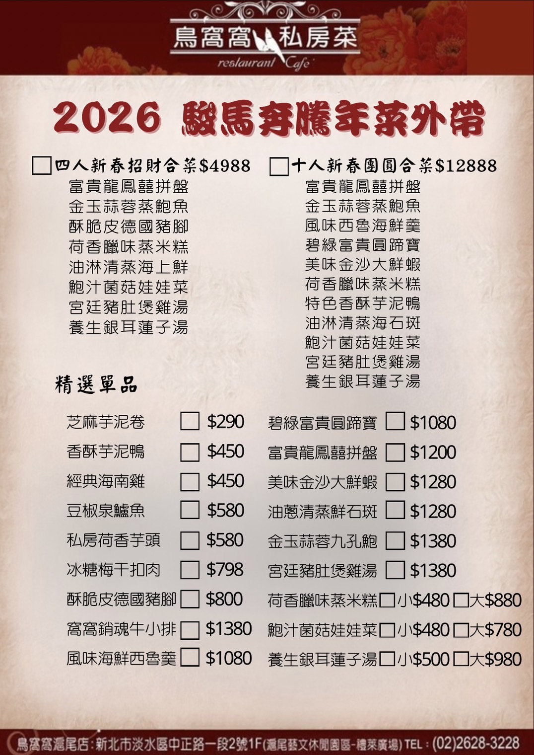春節菜單|除夕菜單、初一至初五菜單、年菜外帶