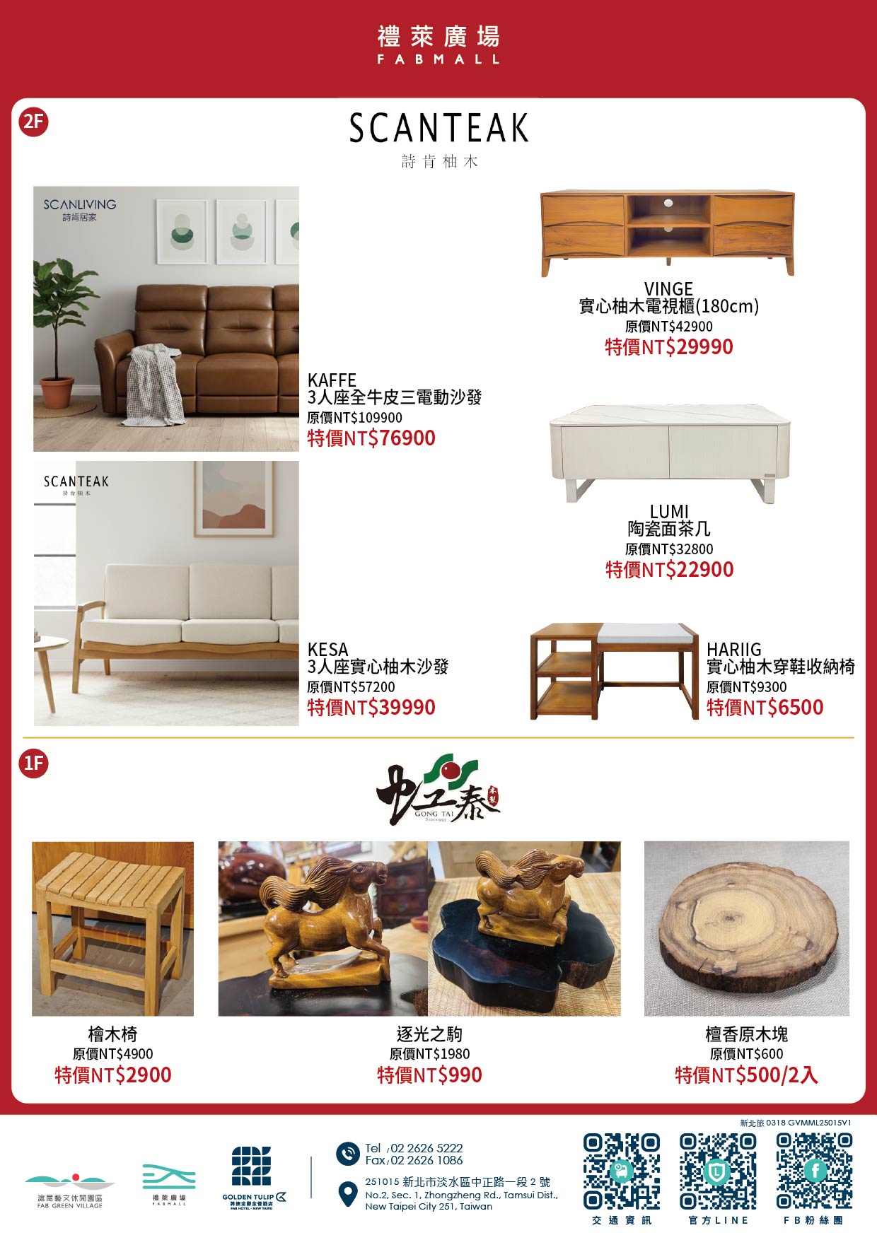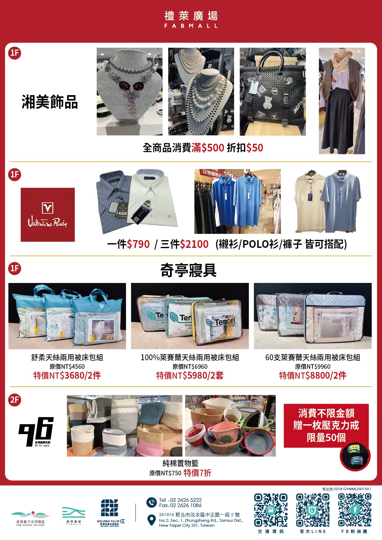 憑【FAB電子會員卡】當日消費滿 3,000元以上,再贈100元商品抵用券乙張
